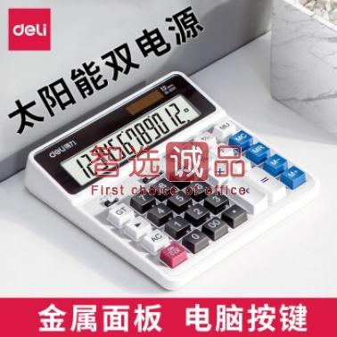 得力(deli)计算器会计财务专用大号大屏计算机学生用文具办公12位大按键带语音多功能桌面计算 2137银色-财务专用(太阳能双电源)