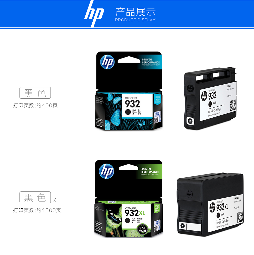 惠普(hp)T0A80AA原装932/933XL大容量墨盒适用7110/7510/7612/7610 黑色高容单支 (约1000页)