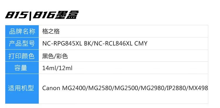 商品名称:格之格佳能845/846墨盒