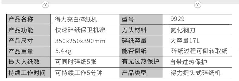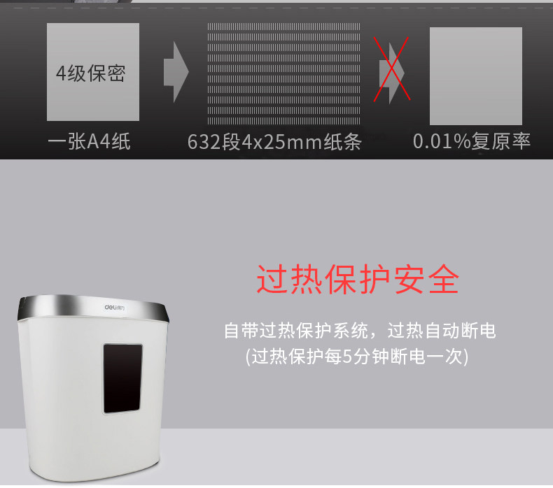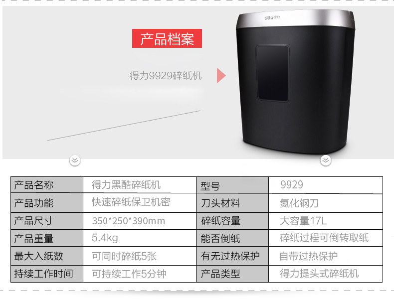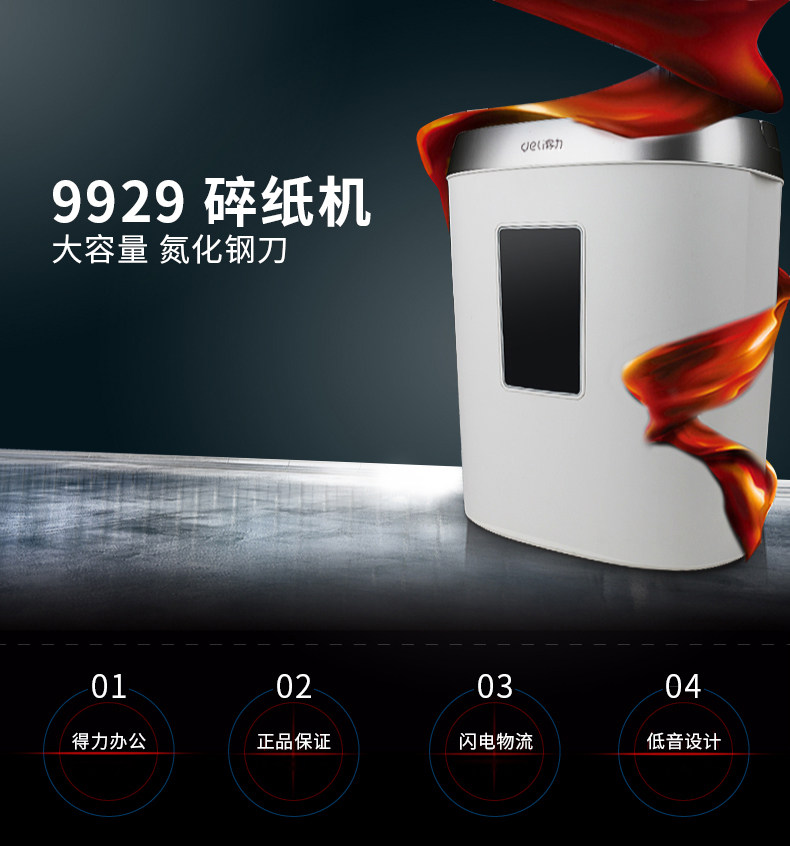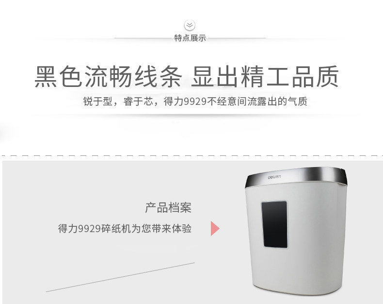 商品名称:Deli/得力9929碎纸机4级保密条状 17L