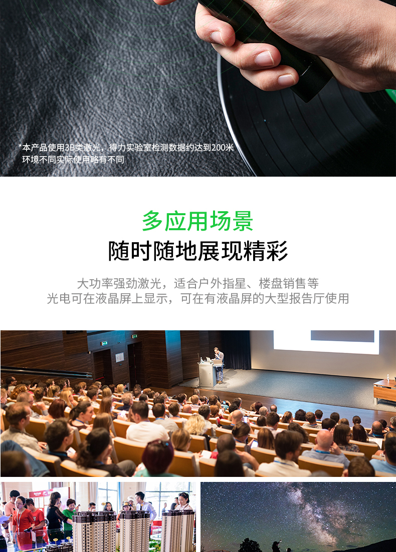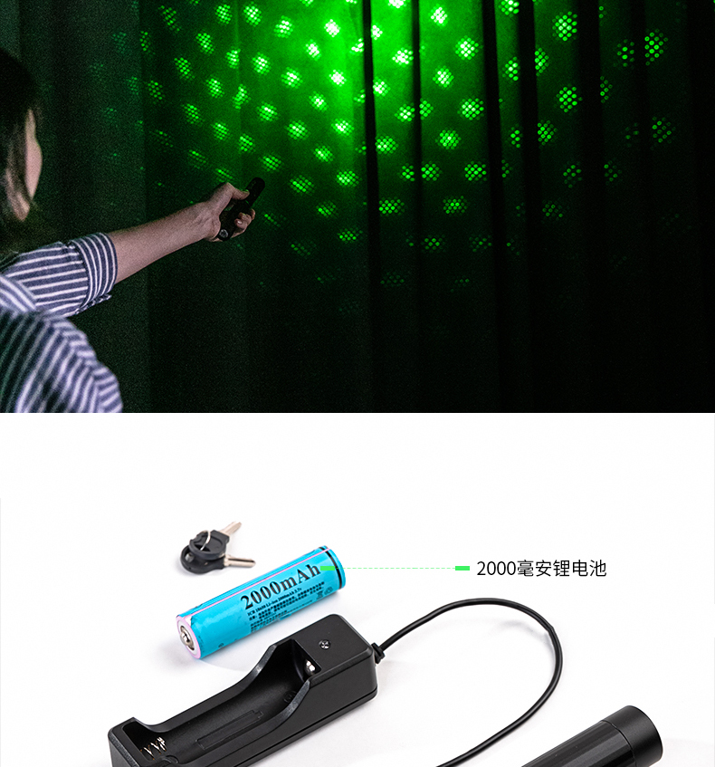 得力(deli)50602 激光笔 绿光大功率 满天星200m 锂电池