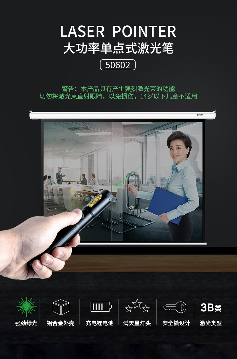 商品名称:得力(deli)50602 激光笔 绿光 激光手电
